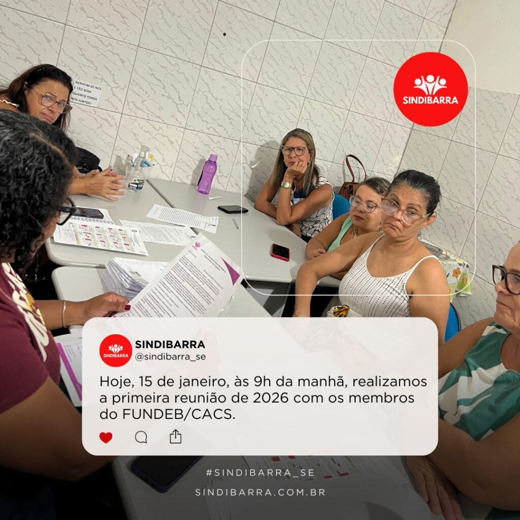 Hoje, 15 de janeiro, às 9h da manhã, realizamos a primeira reunião de 2026 com os membros do FUNDEB/CACS. O SINDIBARRA esteve presente como parte dos membros de fiscalização, cumprindo seu papel com responsabilidade e compromisso.Durante a reunião, analisamos as folhas de pagamento e discutimos demandas importantes da educação, sempre com foco na transparência, na […]