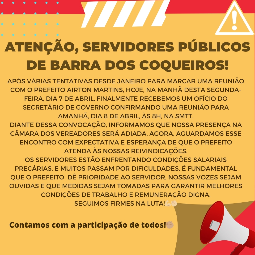 Diante dessa convocação, informamos que nossa presença na Câmara dos Vereadores será adiada. Agora, aguardamos esse encontro com expectativa e esperança de que o prefeito atenda às nossas reivindicações.