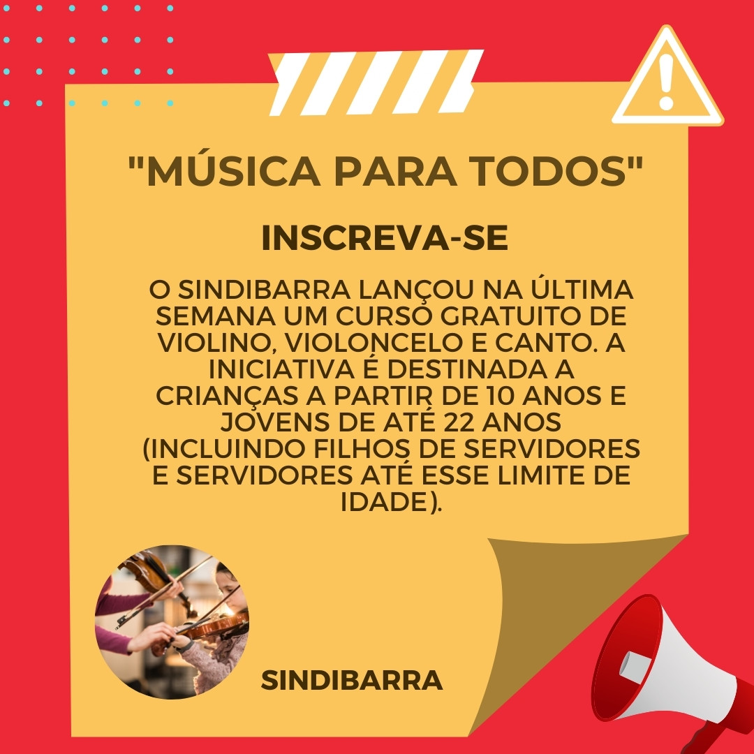 O SINDIBARRA lançou na última semana um curso gratuito de violino, violoncelo e canto. A iniciativa é destinada a crianças